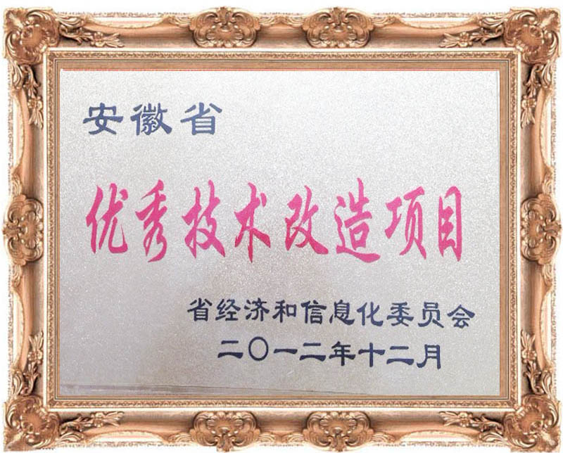 祝賀安徽環瑞獲得2012年度安徽技術改造優秀項目