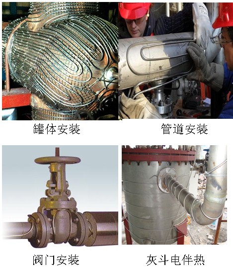 電熱帶的優勢很多,其具體分類有自限溫電熱帶,恒功率電熱帶,MI加熱電纜,伴熱復合管??舍槍Ω鞣N防爆易燃,腐蝕區域的管道進行保溫伴熱。并且針對消防,太陽能熱水器,石油,電廠,環保在線監測等開發了專用產品。此外,電熱帶可實現不同設備,部件的伴熱,以下有: