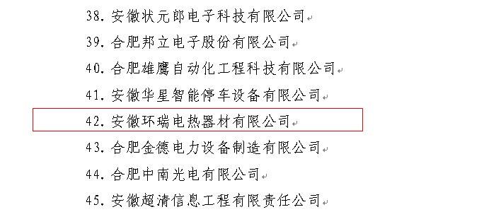 科技小巨人培育企業是針對有一定生產規模與研發能力,并且取得一定量的科研成果的企業。企業入選資格需經過經組織申報,縣區推薦、篩選等環節。安徽環瑞憑借多年電伴熱帶、發熱電纜生產技術研發獲得了市政府的重視,入選成功。以下為合肥科技局網通知公司內容: