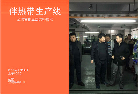2015年1月14日新年伊始,環瑞迎來了新疆烏蘇市相關領導蒞臨考察,烏蘇市相關領導在環瑞董事長計成志陪同下參觀了環瑞電伴熱帶、發熱地席和環瑞現代化展廳,并在環瑞會議時聽取環瑞員工對環瑞未來發展的相關介紹。