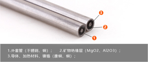 2、鎳鉻合金芯不銹鋼護套MI加熱電纜
