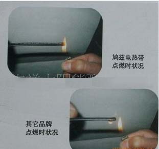 自控溫電熱帶大多數聚烯烴外護套,而有些廠家卻用塑料代替導致事故發生,而需在環境溫度過低,過高的情況和特定的工作場合也制約著必須使用自控溫電熱帶含氟型外護套,目前市場是出現了阻燃型電熱帶,和非阻燃型電熱帶。兩者產品價格存在差距,有些廠家為了利潤最大化,將后者冒充前者流通市場。未避免此情況發生,可用以下方法進行試驗: